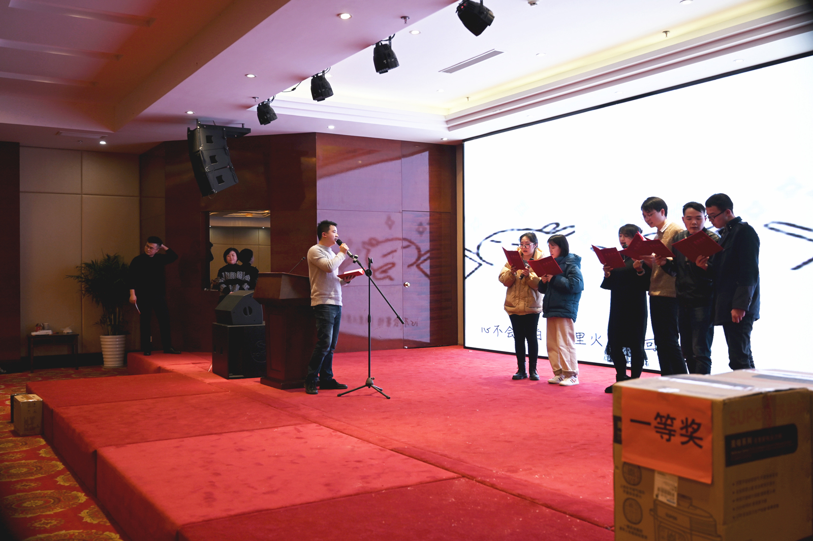 公司總經理張昌宏致新春賀辭,張總首先向全體員工、合作伙伴及全體員工家屬的大力支持一年的辛勤工作和團結配合致謝,隨后對2019年度的工作進行簡要回顧。張總指出,2019年公司全體員工在集團公司的正確領導下,同心協力,戮力前行,在市場開拓、內部管理、技術提升和品牌運作上面都取得了突破性提升,為公司后期快速發展奠定了堅實的基礎,得到了黃山市國資委和集團領導的充分肯定。2020年是公司揚帆起航的關鍵之年,張總向全員宣讀了2020年總體目標和發展規劃,鼓勵全員繼續以飽滿的工作熱情和誠信務實的精神,努力外拓市場,內抓管理,確保公司技術水平、產品質量和生產效率再創佳績,譜寫荷琇新篇章。